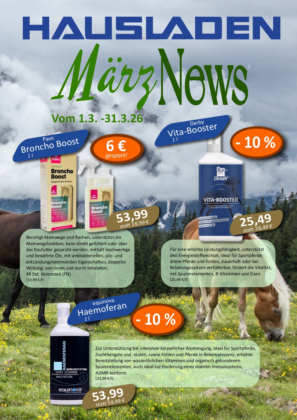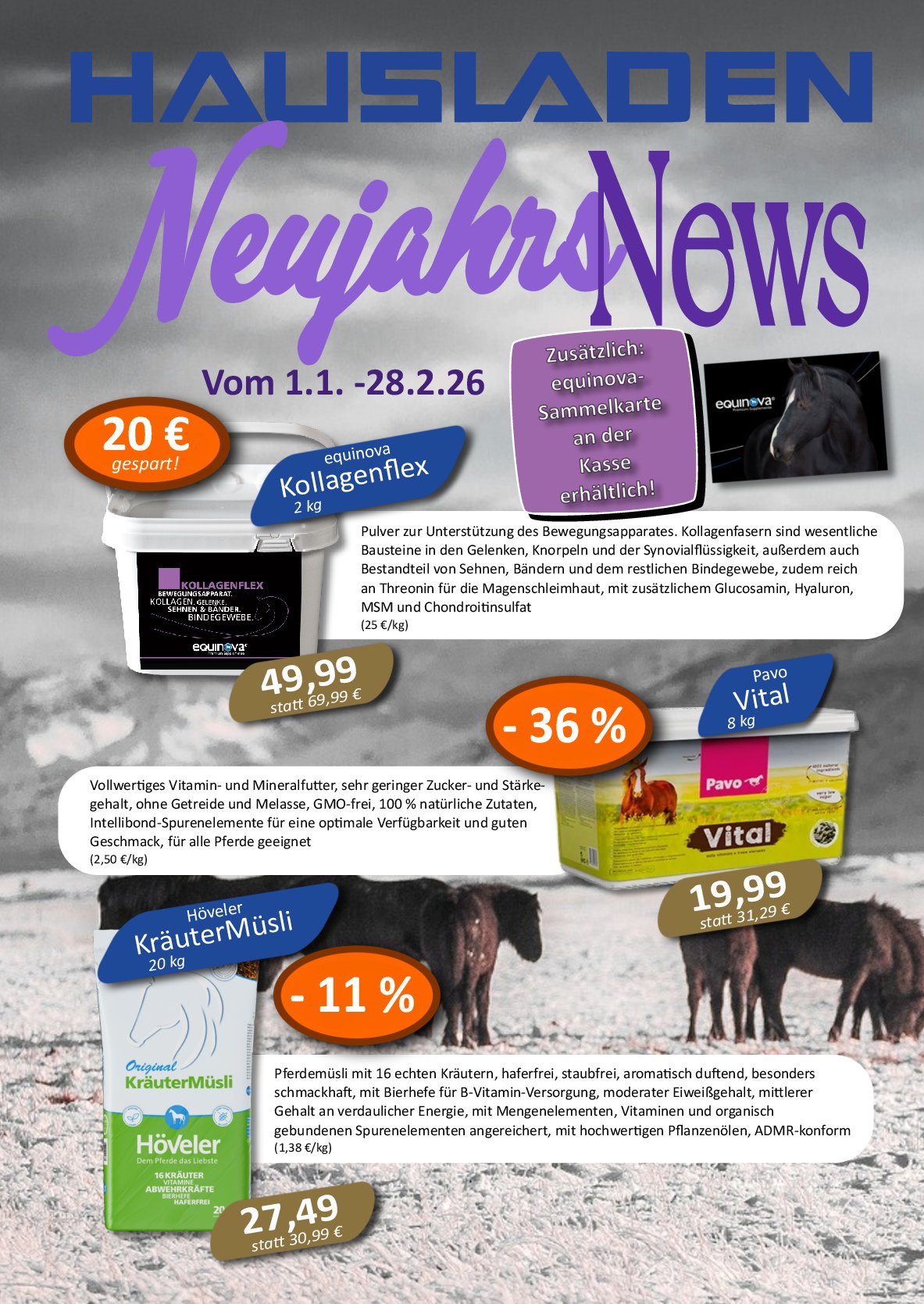 In unserem neuen Futtermittel-Katalog finden Sie alle Hausladen Marken, Müslis, Struktur- und Getreideprodukte sowie Einzelfuttermittel übersichtlich zusammengestellt – inklusive aktueller Zusammensetzungen, Einsatzbereiche und Fütterungsempfehlungen.