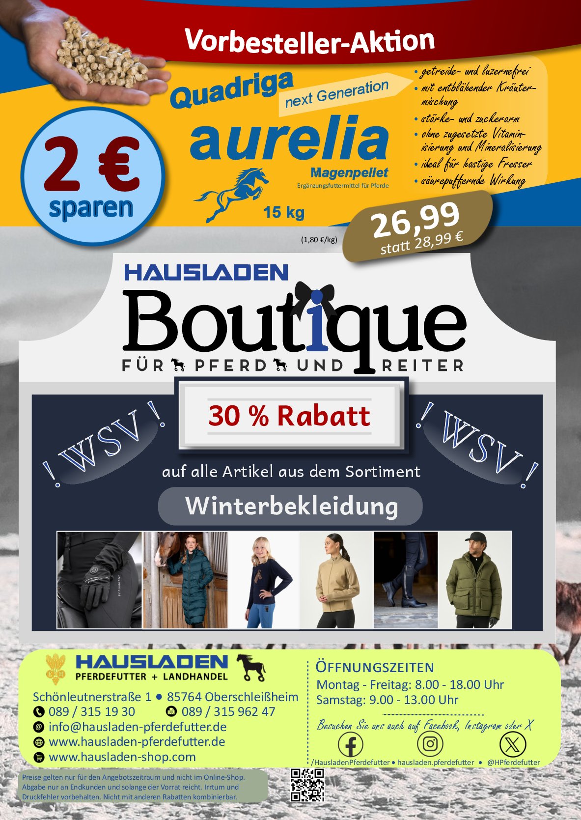 Rufen Sie uns an: 089 / 315 19 30 oder schreiben Sie eine eMail an info@hausladen-pferdefutter.de.